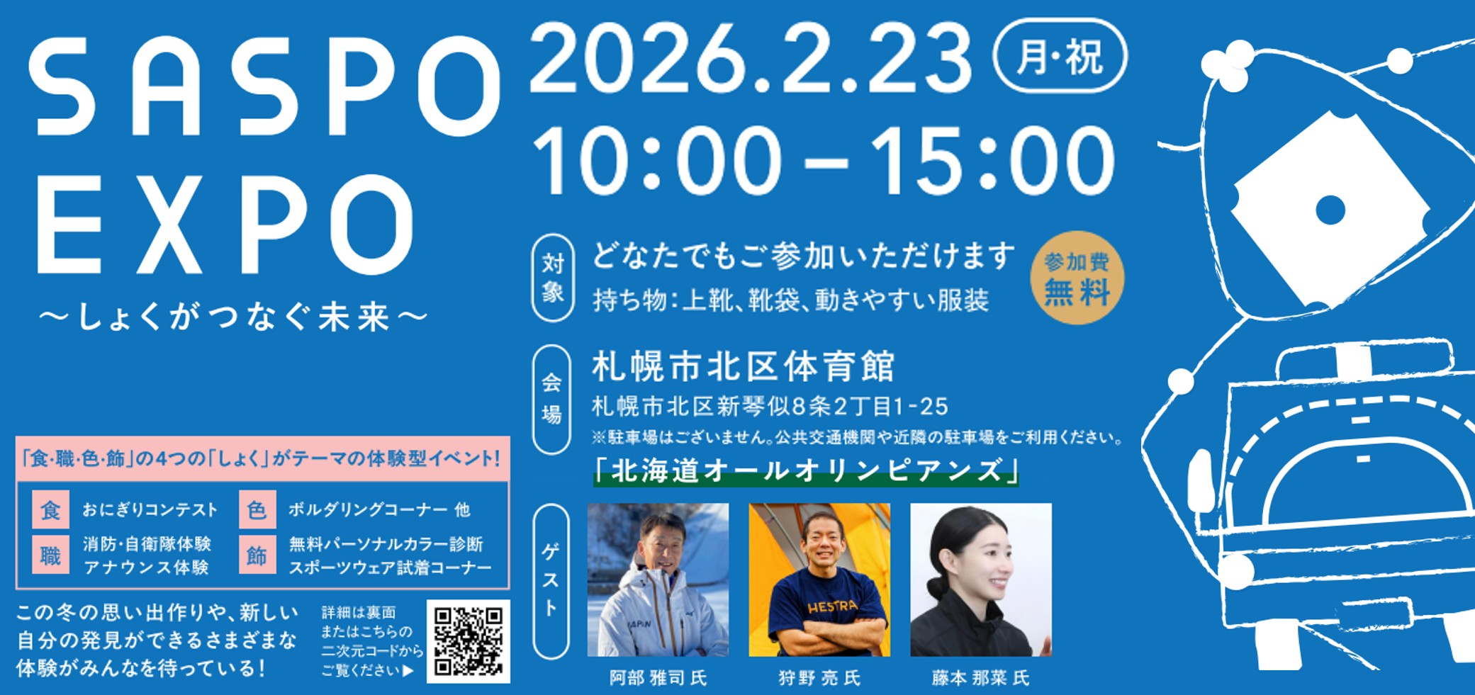 - ■ 【イベント情報】SASPO EXPO~しょくがつなぐ未来~ \おにぎりコンテストも開催!最優秀賞は「てづくりおむすびのお店 どんぐり」様にて期間限定販売します!/(1月26日)