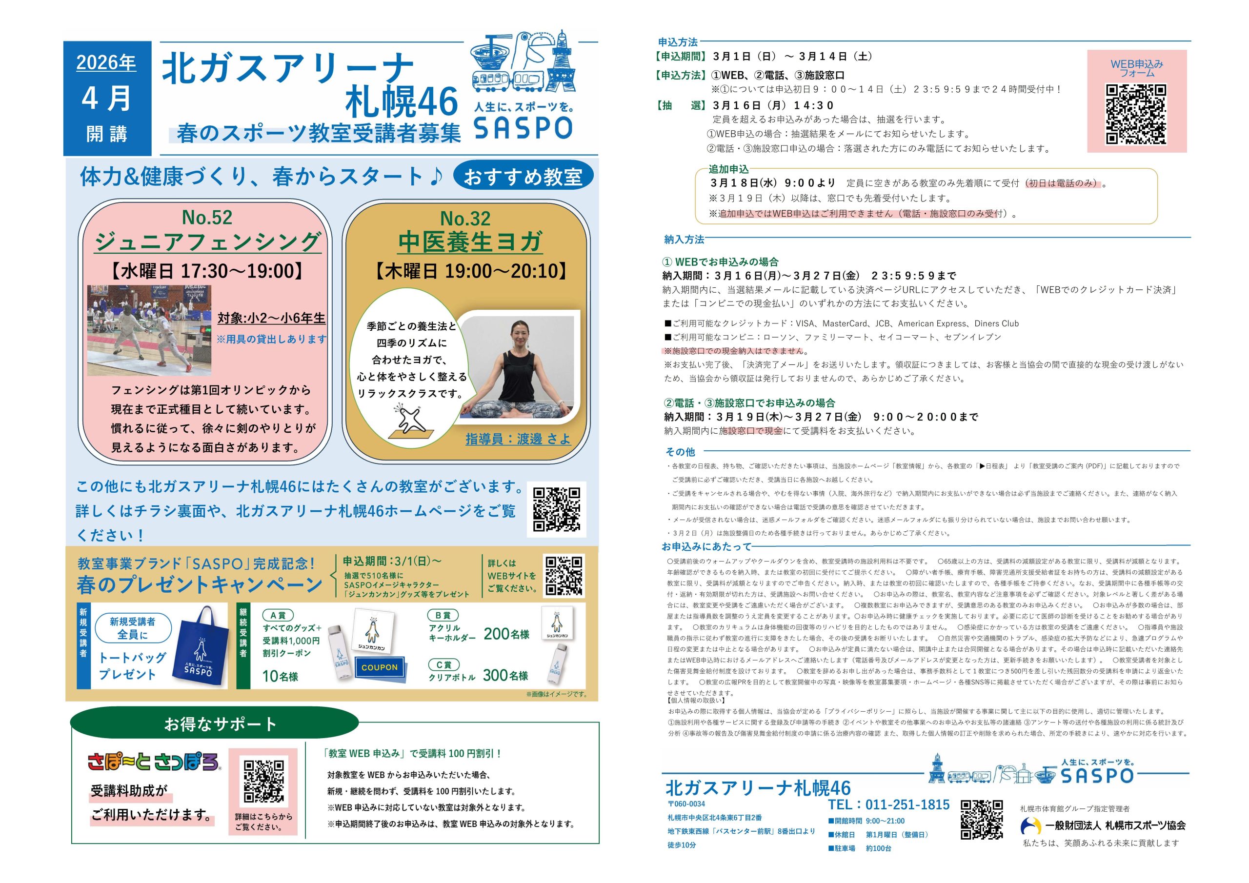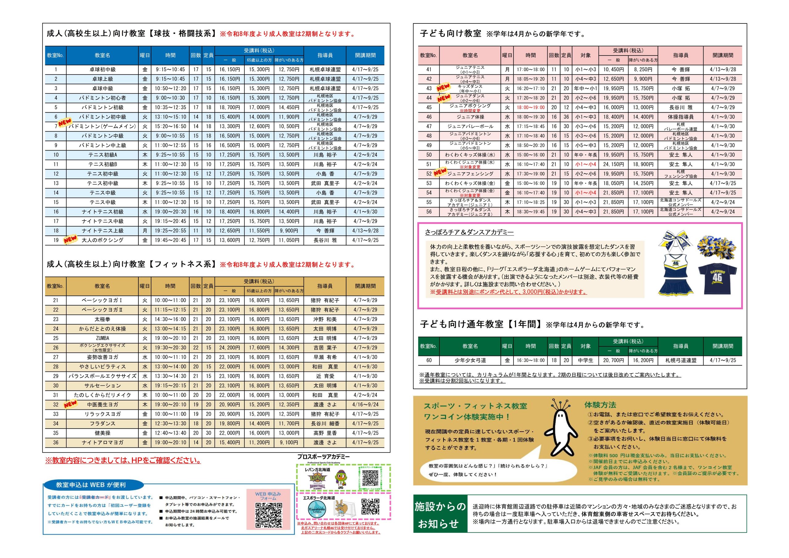 4月開講 第1期スポーツ&フィットネス教室のご案内です!!🌸