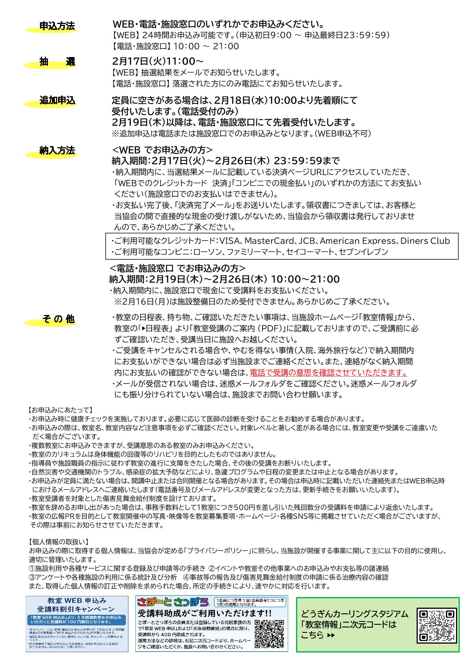 ☞「教室WEB申込み」より、3月開講教室をお申込みいただくと受講料が100円割引となります!!