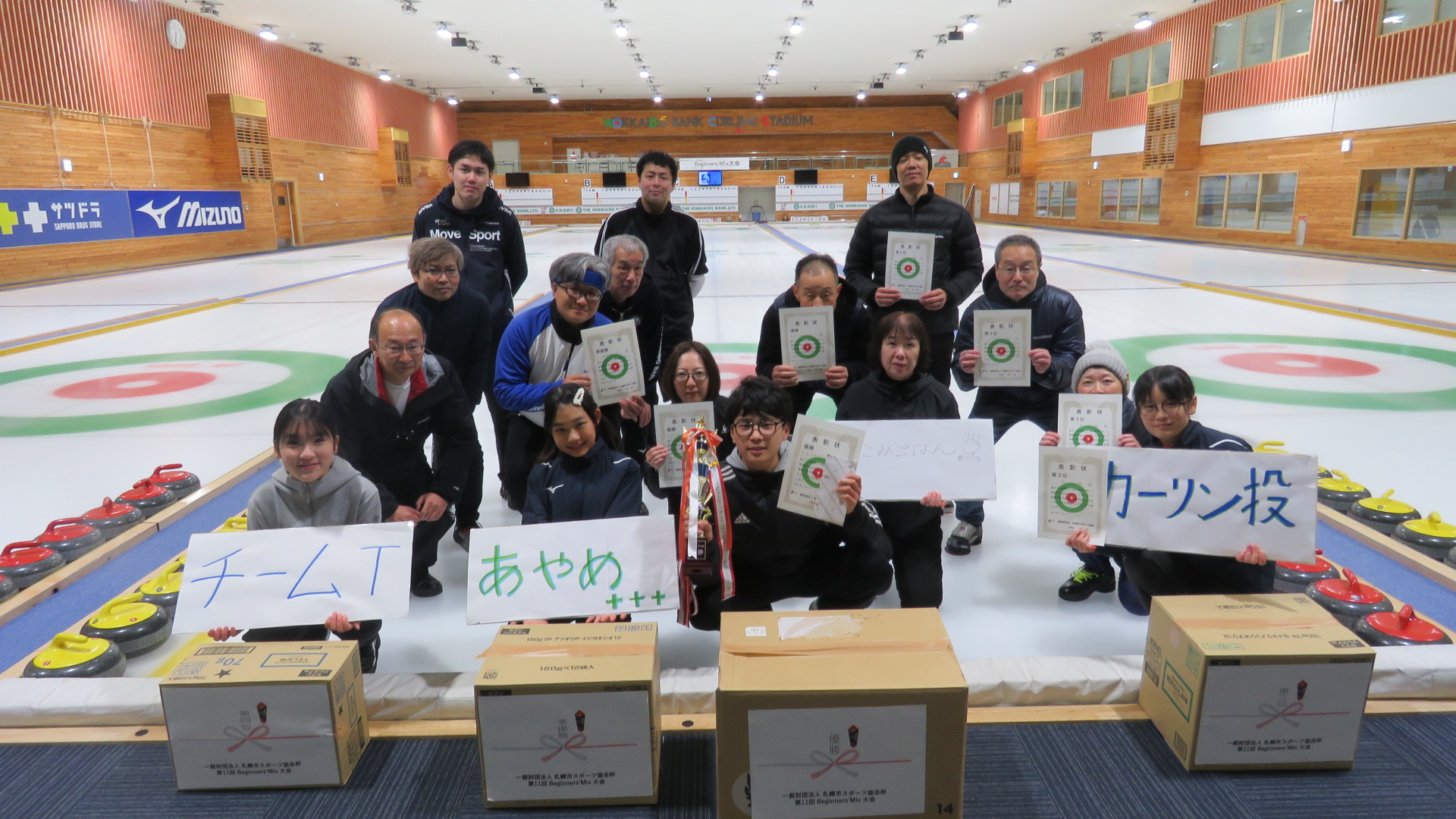本大会は初級者と経験者の混合チームによる大会となりますが、初の顔合わせとなる方が多い中、チームで一致団結して楽しくカーリングをしている姿が見られました。