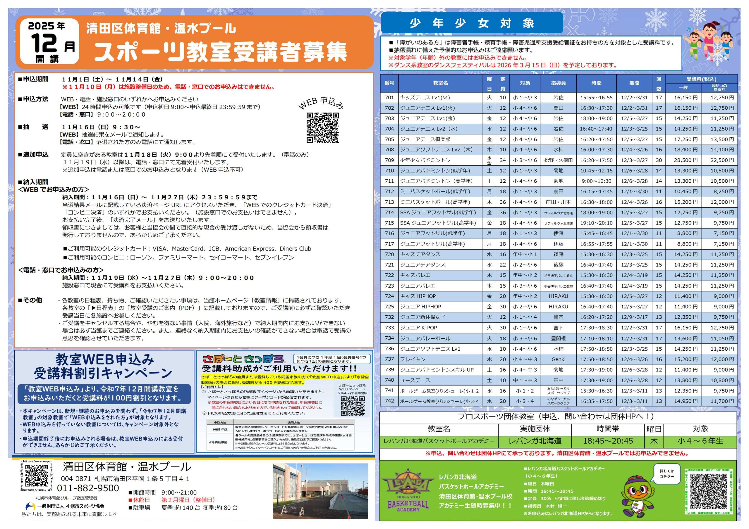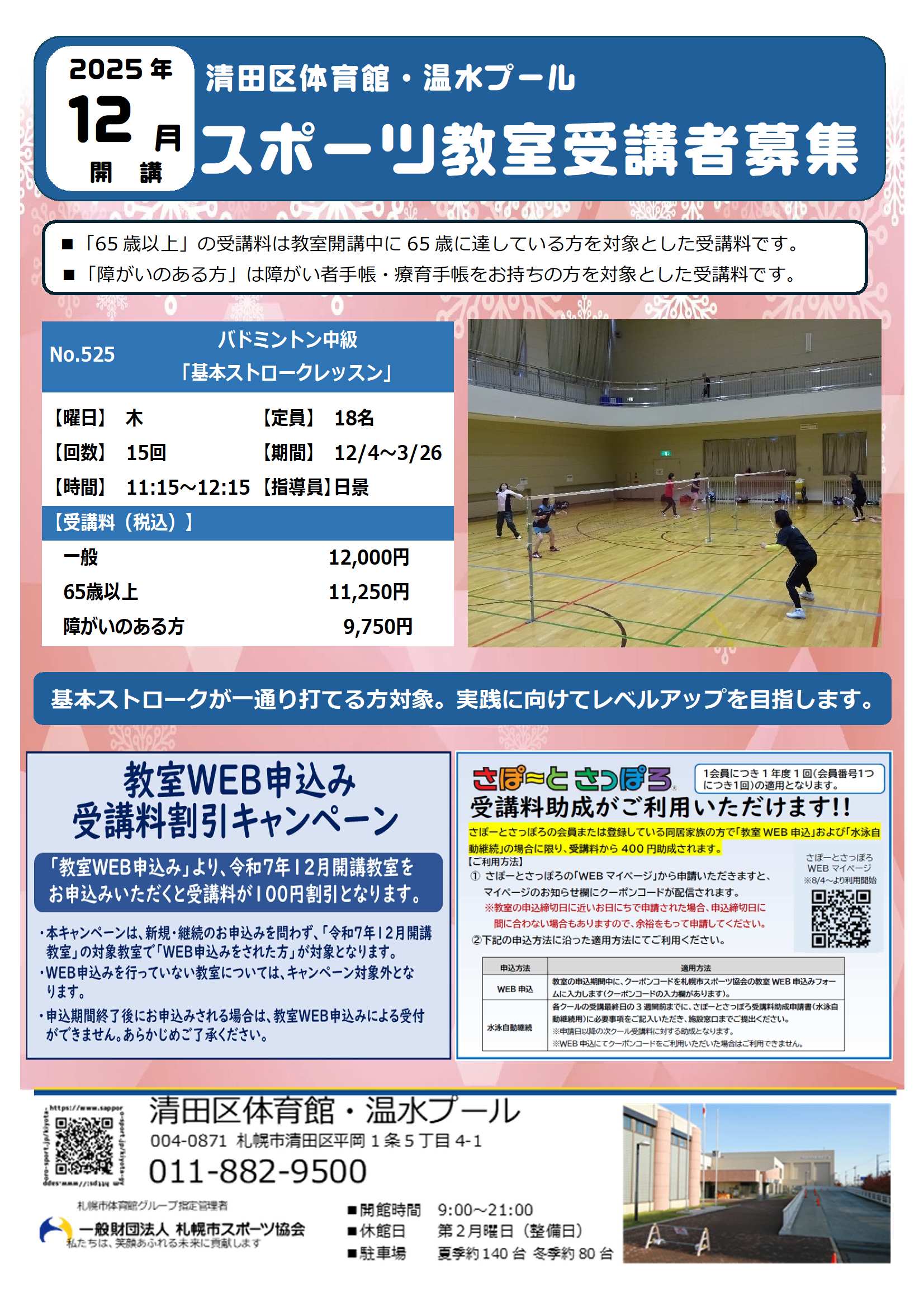 清田区体育館・温水プール ☏011-882-9500