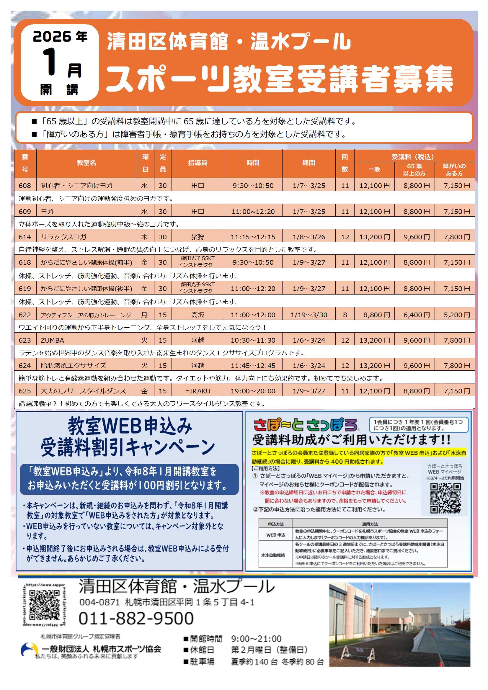 【令和8年1月開講】成人対象スポーツ教室受講生募集!