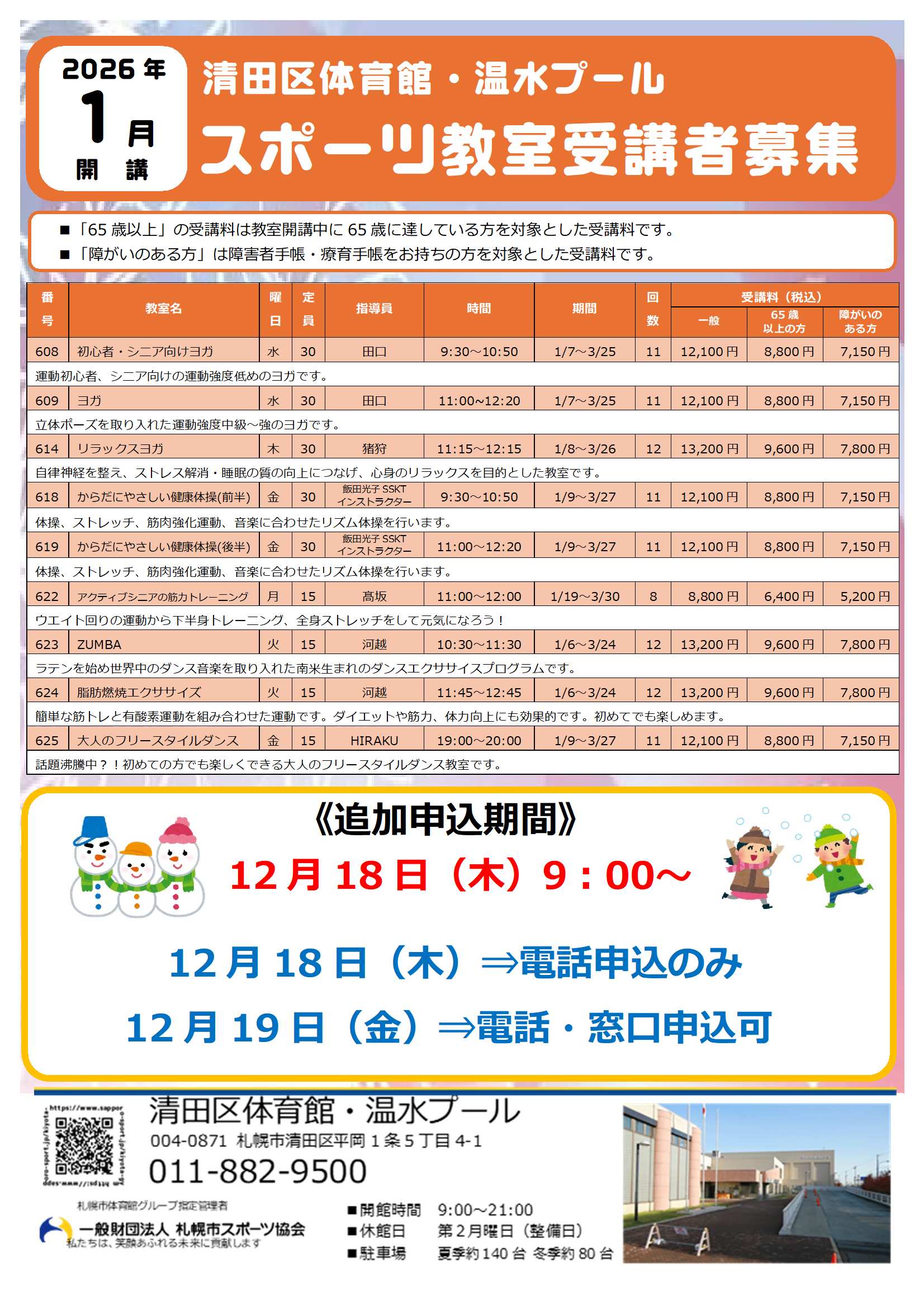 ※12月19日(金)からは施設窓口でも追加申込を受付いたします。