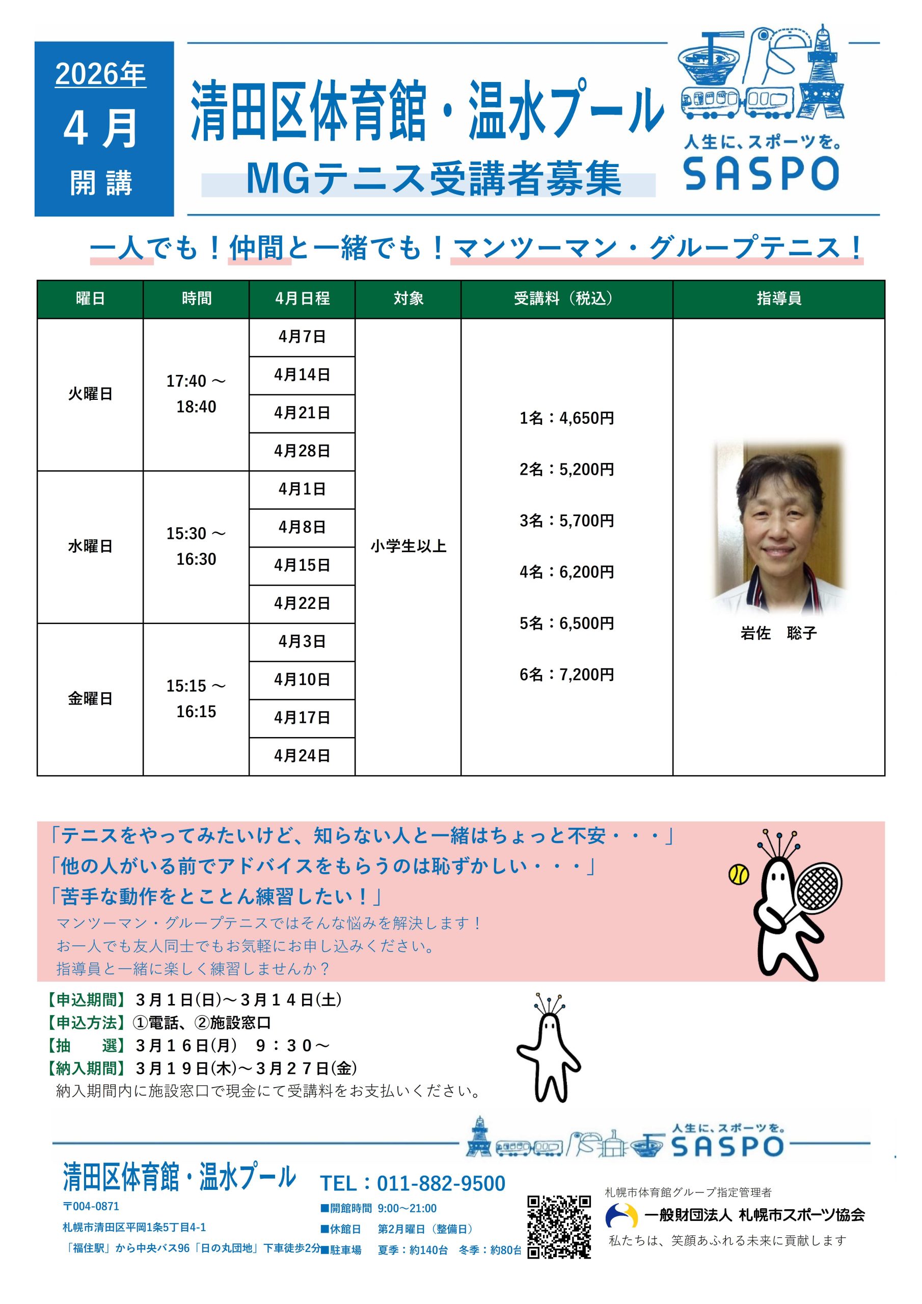 4月のマンツーマン・グループテニス教室の申込を行います!