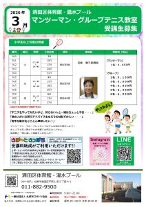 3月のマンツーマン・グループテニス教室の申込を行います!