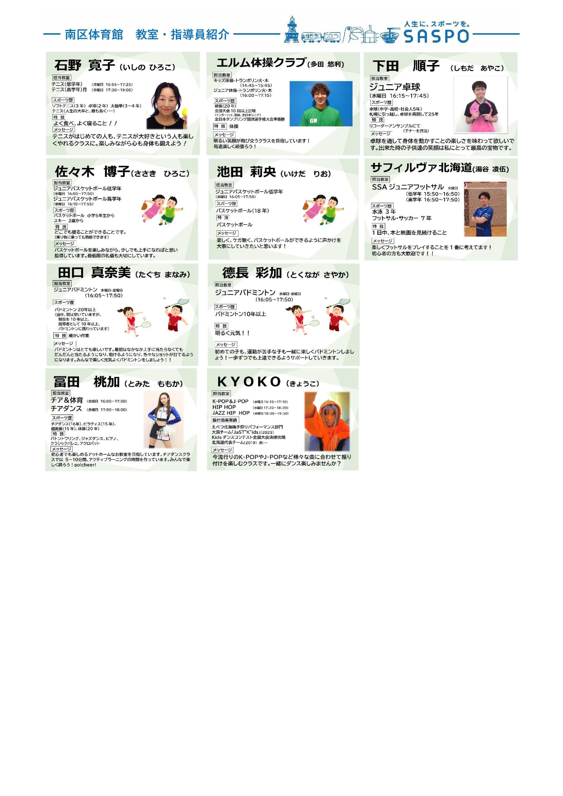 教室の指導員をご紹介いたします!教室内容などの詳細につきましては、