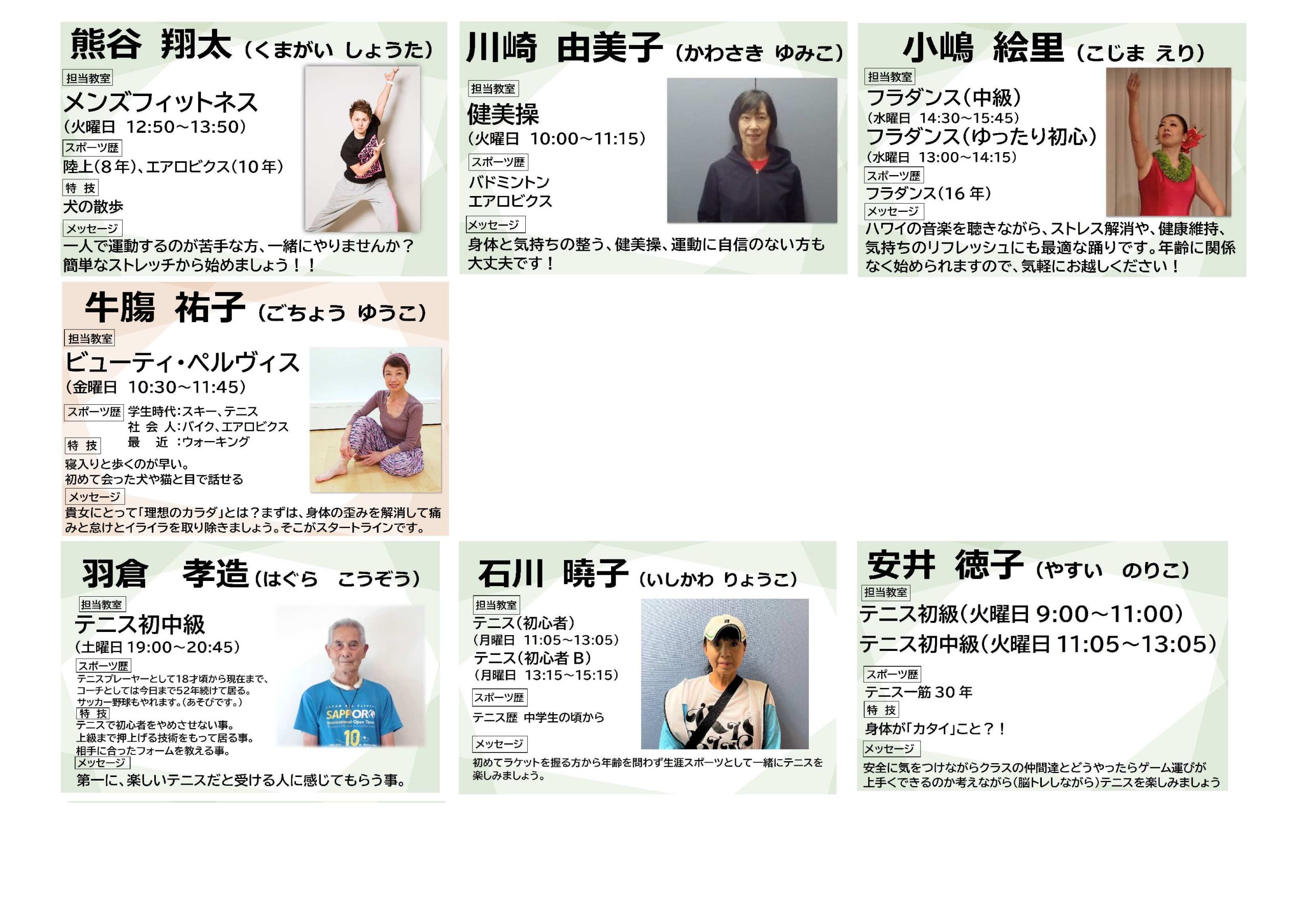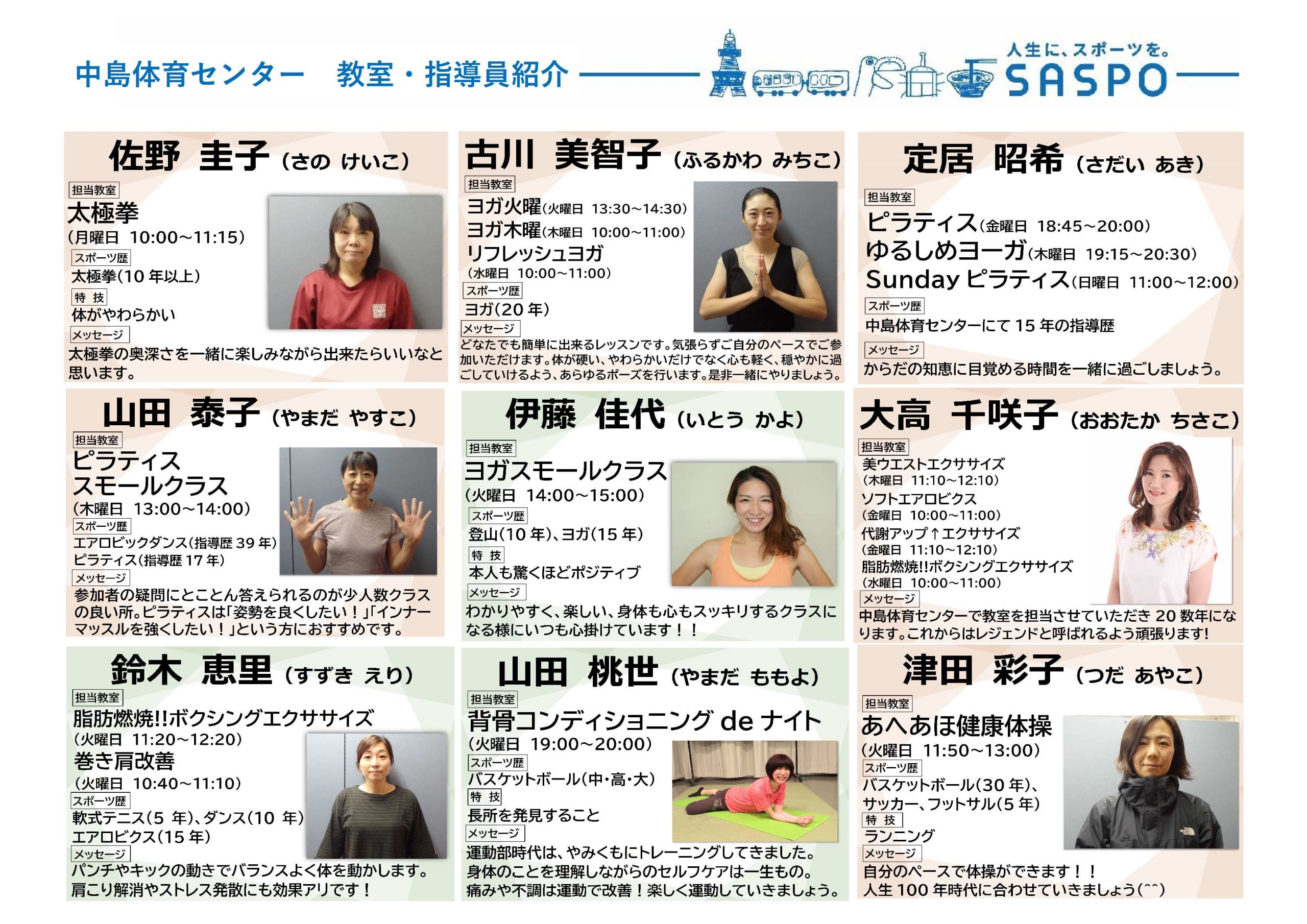 トピックス 令和8年度 教室・指導員紹介更新日:2026年2月15日教室の指導員をご紹介いたします!教室内容などの詳細につきましては、教室情報をご確認ください。▸【中島体育センター教室情報リンク】 教室・指導員紹介(PDF)▶︎ トピックス一覧に戻る