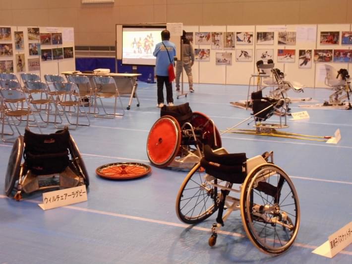 パラリンピック等のパネル展示といろいろな用具の紹介を行いました