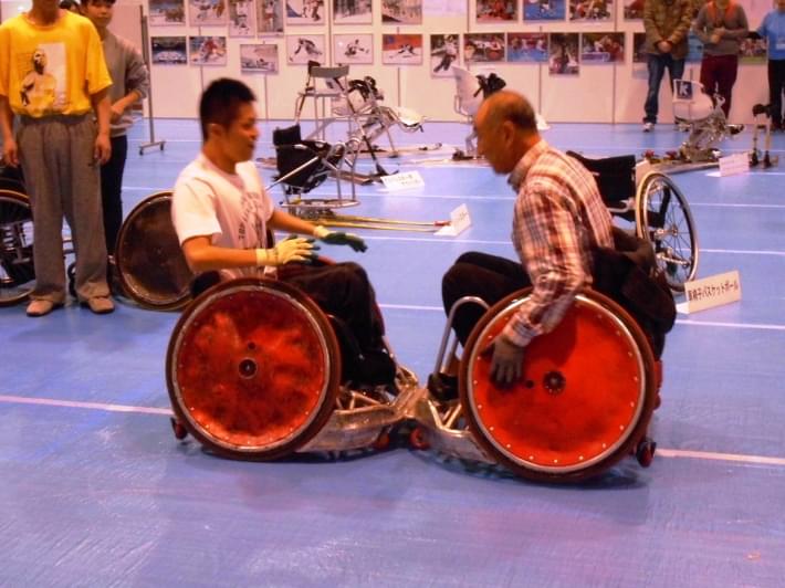 ウィルチェアラグビーでぶつかる衝撃を体験しました
