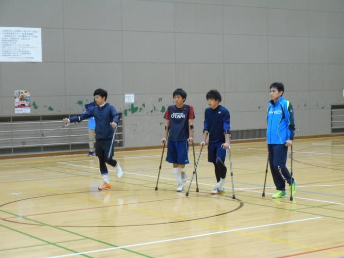 アンプティサッカーは上肢、下肢に切断・欠損の障がいがある選手がクラッチ(杖)を使用して移動します