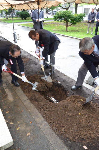 100周年に掘り起こす予定です。 ≪タイムカプセルの埋設、アオダモ植樹 9/28≫
