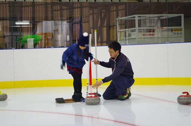 カーリング体験会 うまく投げられるかな?