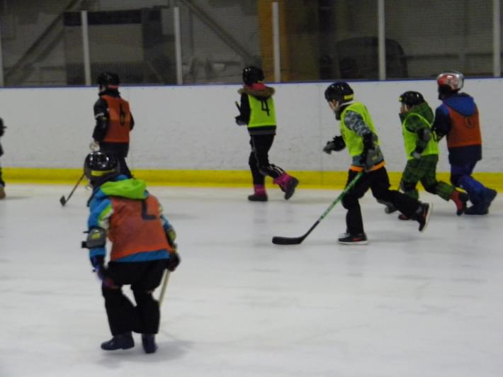個人競技の後は、少し休憩して団体競技へと移ります。1つ目の種目は「氷上外靴ホッケー」!初めてのホッケーにみなさん苦戦している様子でしたが、積極的にパックを追いかけ、シュートを決めていました♪