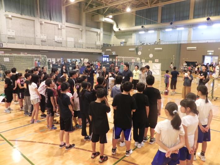 小学生ソフトバレーボール大会のルール説明 今回は9チームの応募がありました。