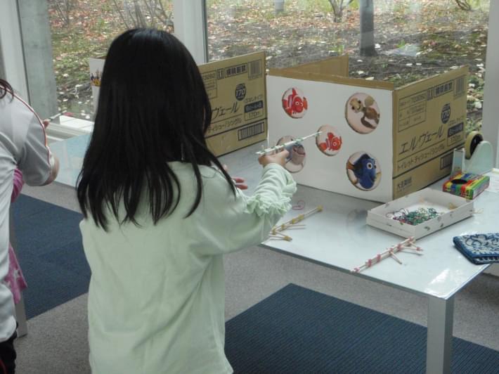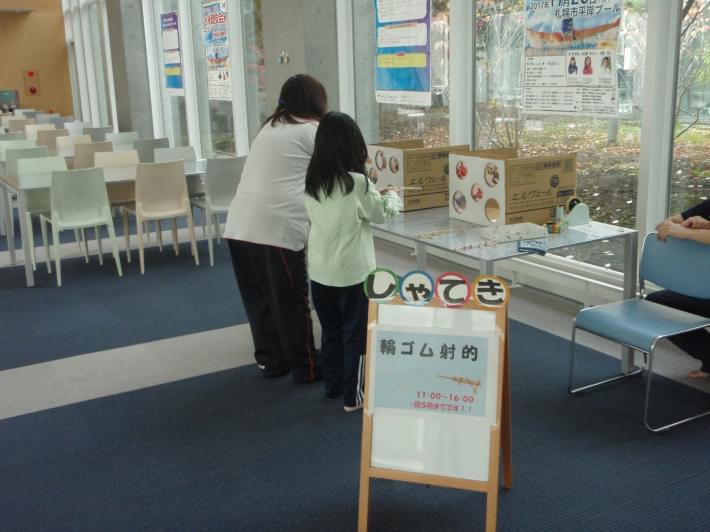 プールの前も後も「輪ゴム射的」コーナーへようこそ。