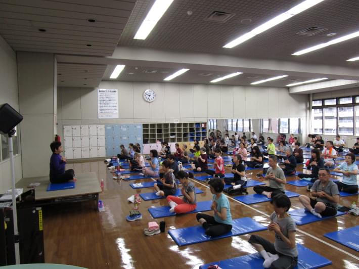 「おはようヨガ」朝早くからたくさんの方にご参加いただきました。