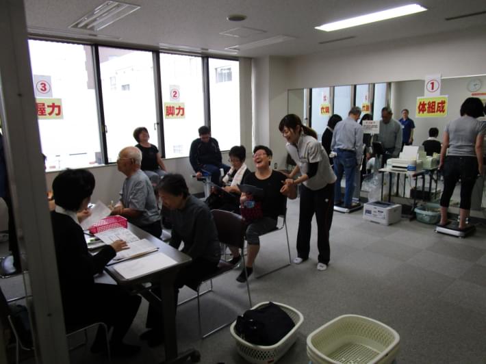 測定コーナーでは血圧・INBODY・脚筋力・握力測定を行い、その後保健師からの結果説明を行いました。