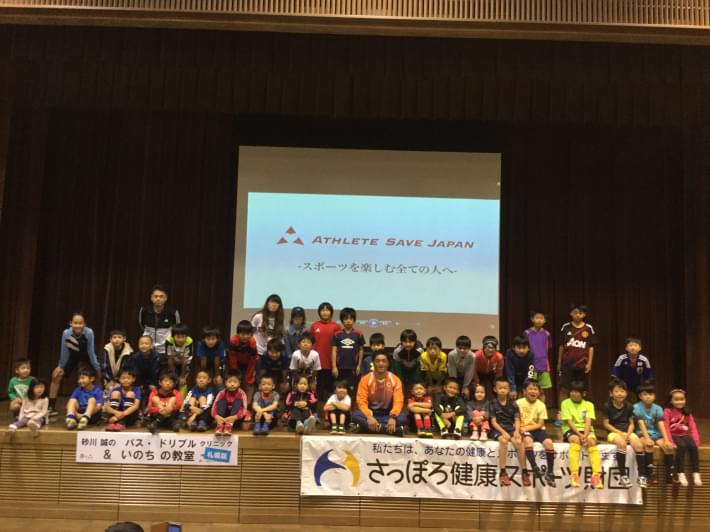 元コンサドーレ札幌の砂川誠氏を講師に招き、パスとドリブルの「スキルアップクリニック」といのちの大切さを親子で学ぶ「いのちの教室」のイベントを開催しました.