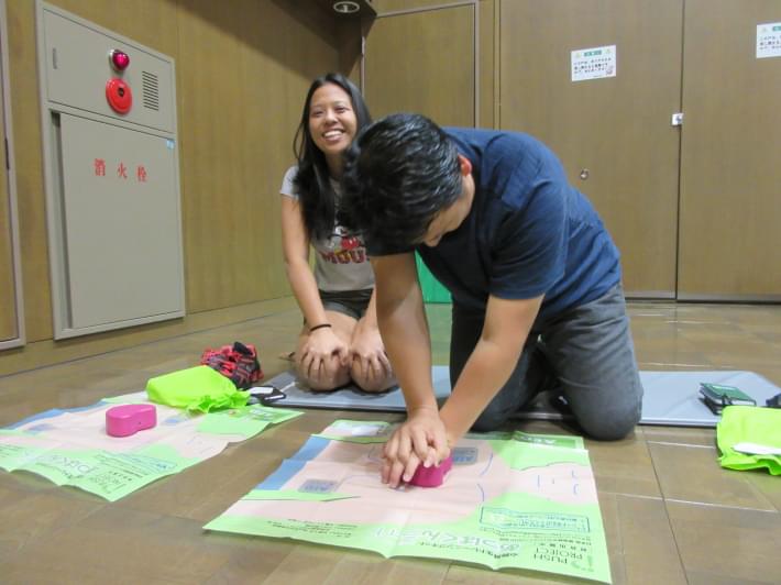JICA研修員である外国人の方も参加です!初めてのAED講習でした!