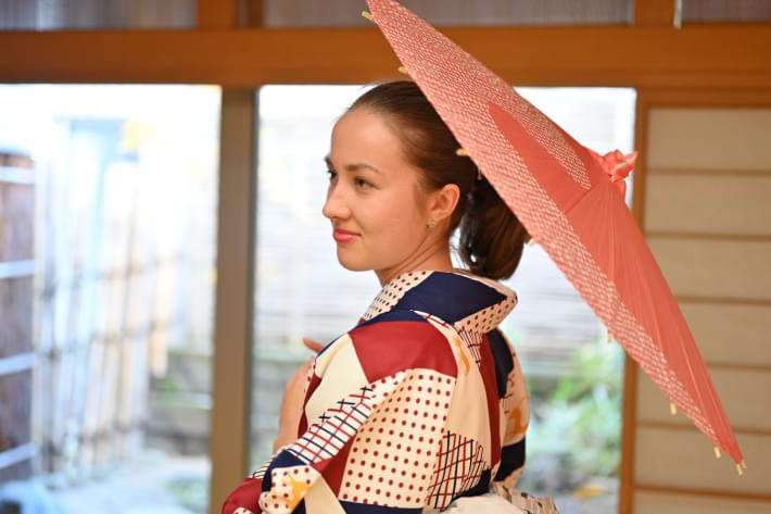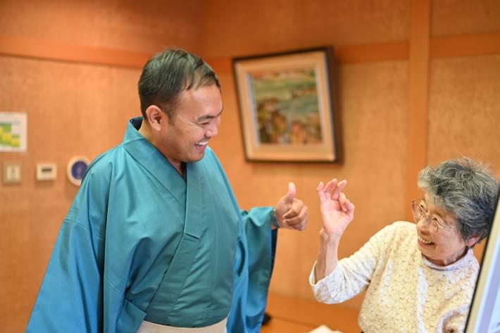 着物のサイズ合わせでは、言葉は通じなくても、心はしっかりと通い合っています!
