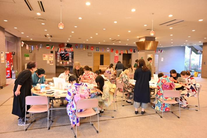 参加者は着物を着て日本文化を楽しみました!交流館では様々な外国人との交流事業を開催しています。