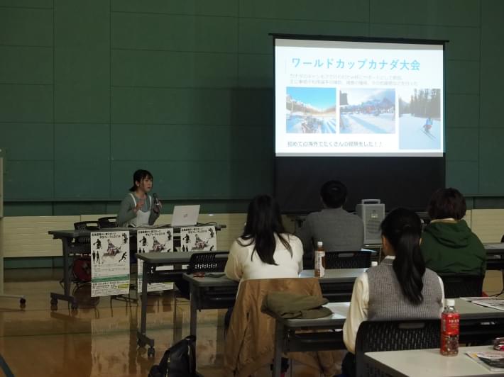 基調報告では平昌パラリンピックに日本代表サポートスタッフとして帯同した学生が現地で体験したことを報告し、聞いていた学生からは多くの質問が出されました。