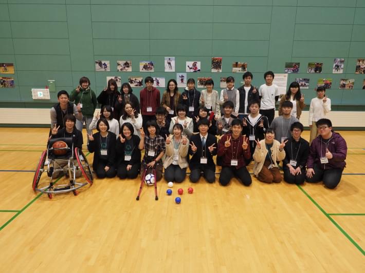 最後は参加学生で記念撮影。この取り組みで多くの学生が障がい者スポーツに関心を持っていて、実際に行動していることがわかりました。これからも頑張って欲しいです!