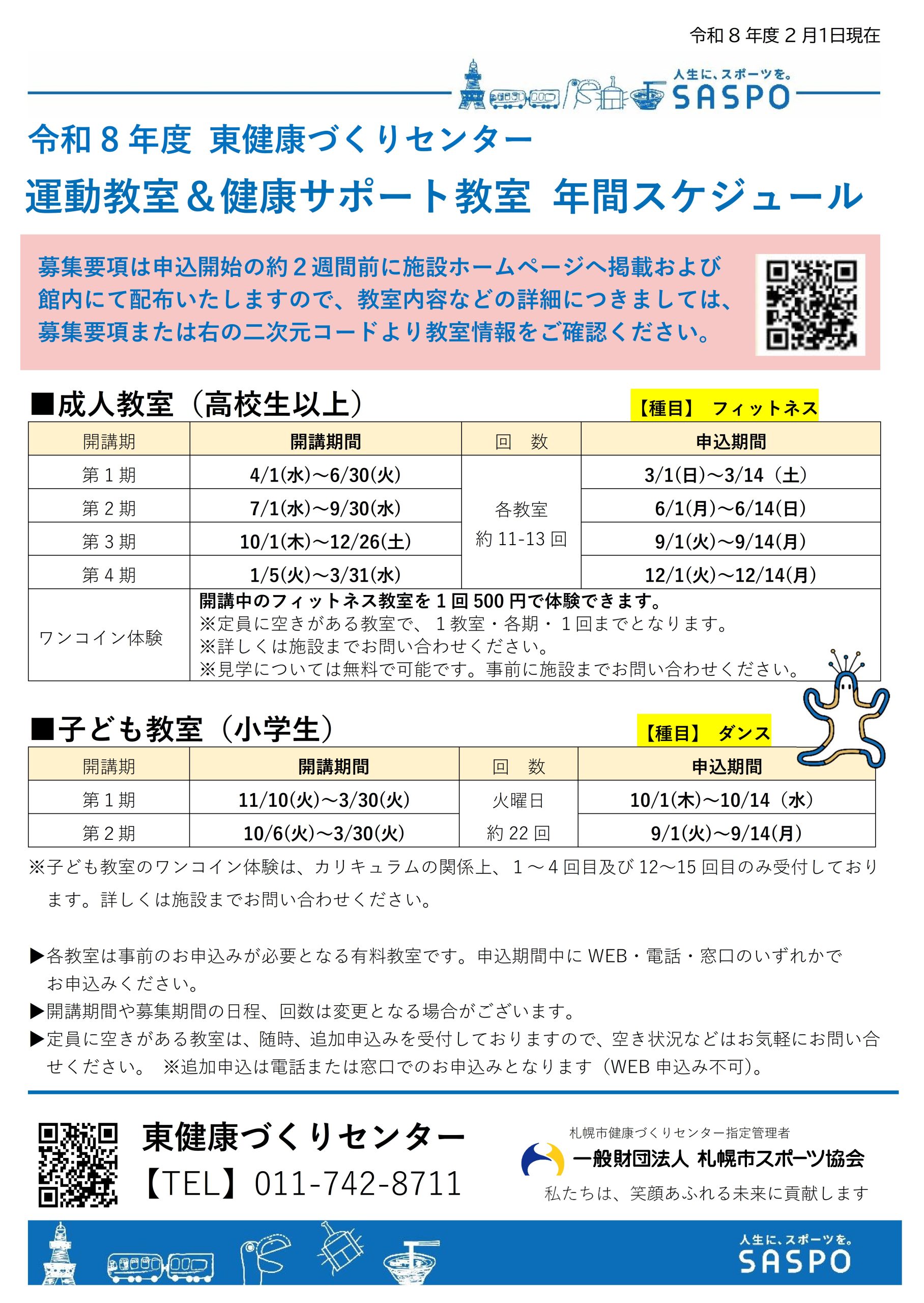 令和 8年度 運動教室&健康サポート教室年間スケジュール表