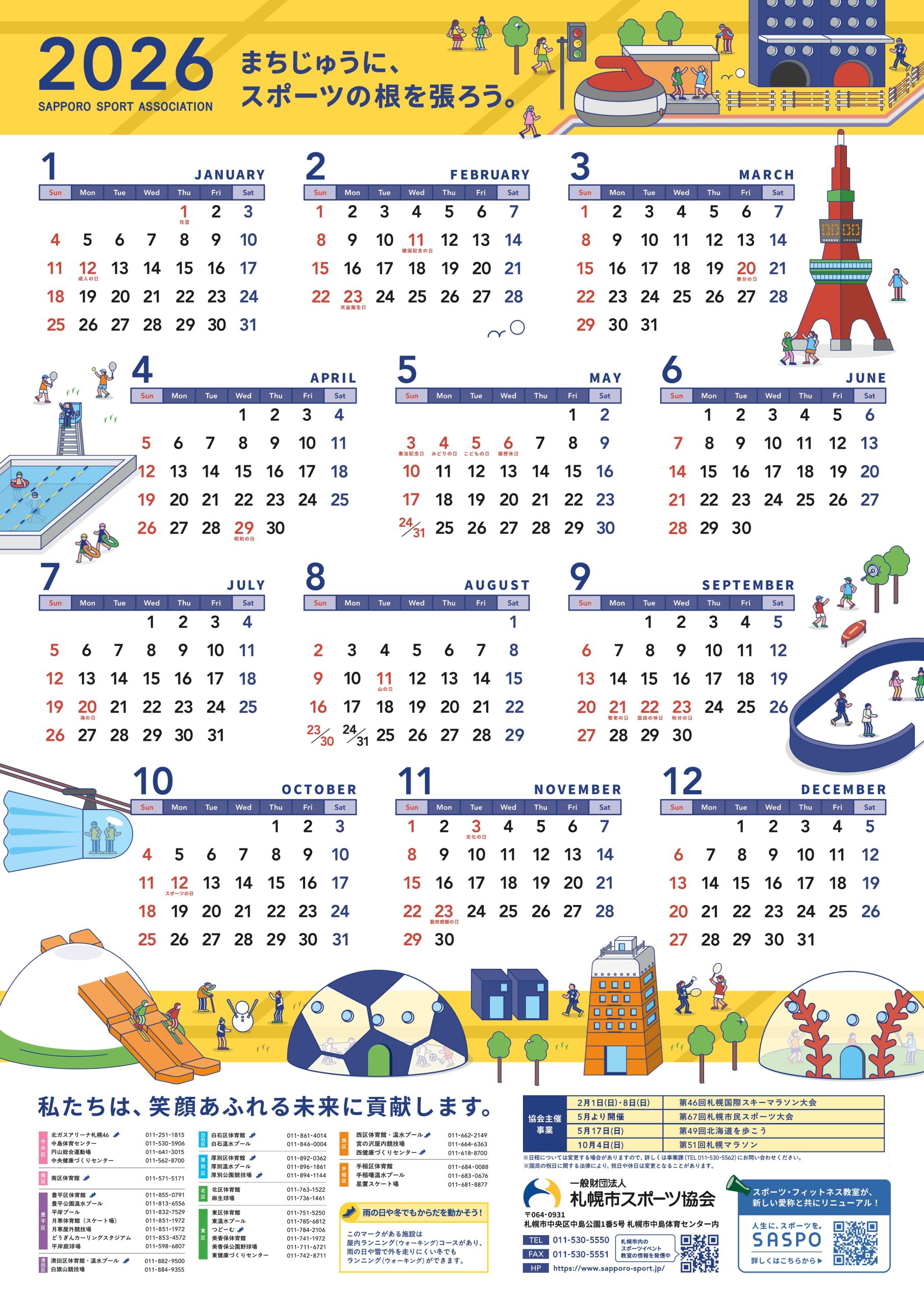 2026年版札幌市スポーツ協会カレンダー無料ダウンロード