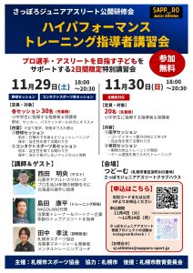 「さっぽろジュニアアスリート公開研修会~ハイパフォーマンストレーニング指導者講習会~」を実施いたします!