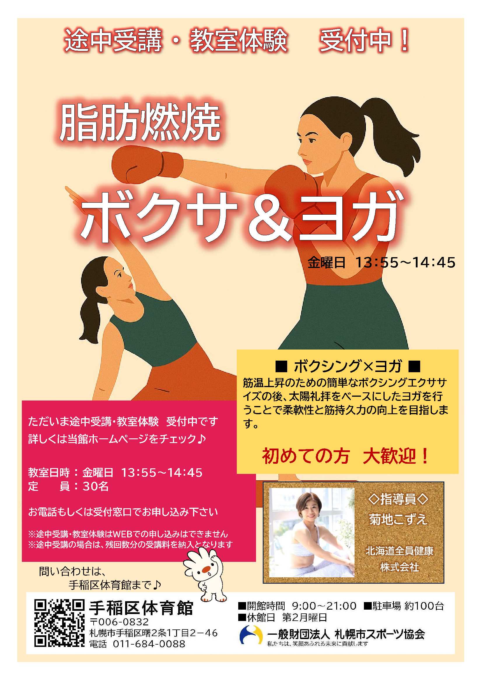 まずはどういう教室か体験してみるのがおススメです!詳しくは手稲区体育館までお問い合わせください。