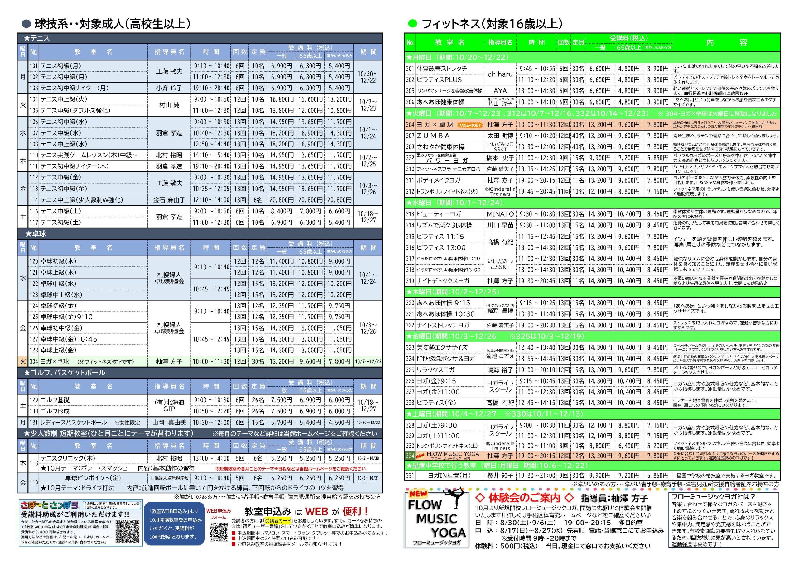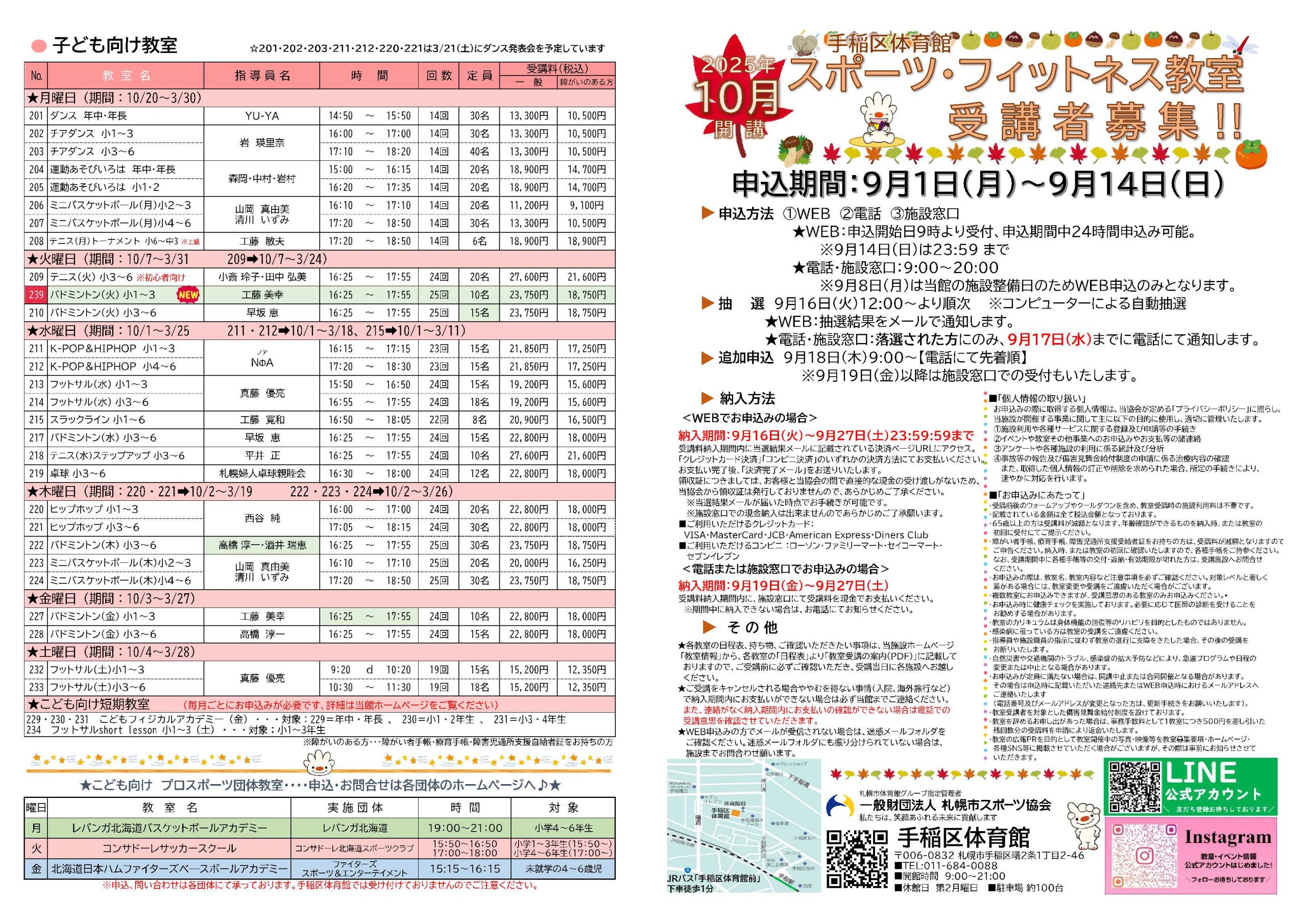 現在、当館10月開講スポーツ・フィットネス・こども教室の追加申込を受付中です!