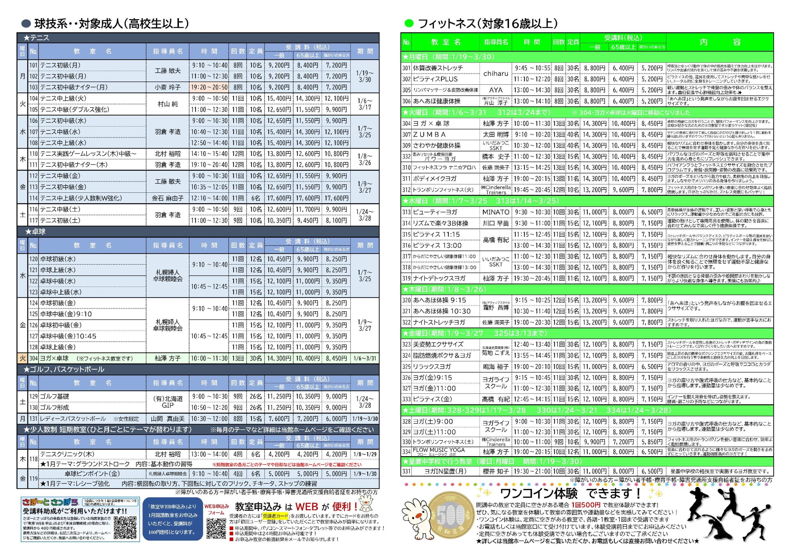 ◆◇1月開講 スポーツ&フィットネス教室 受講生募集◇◆