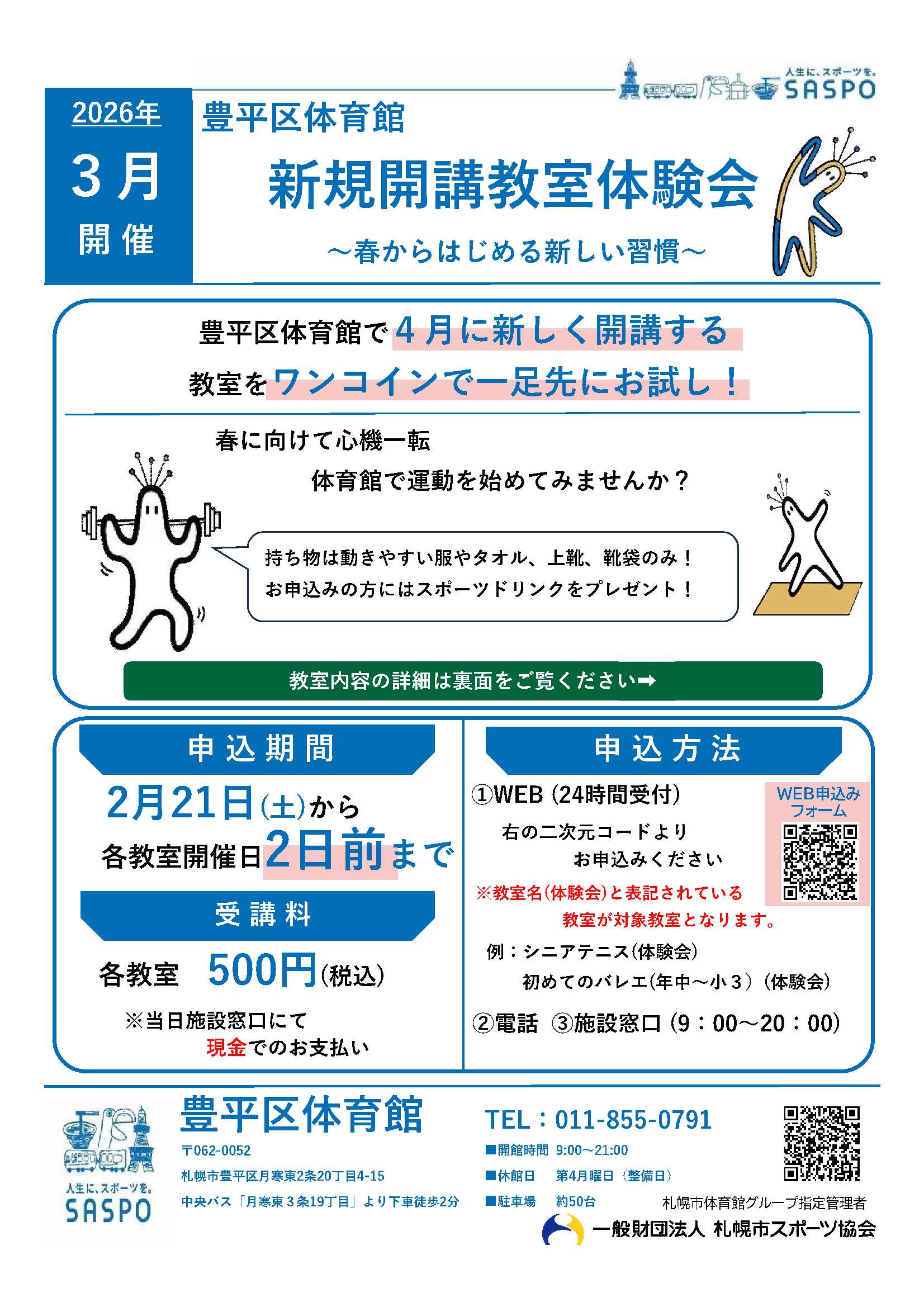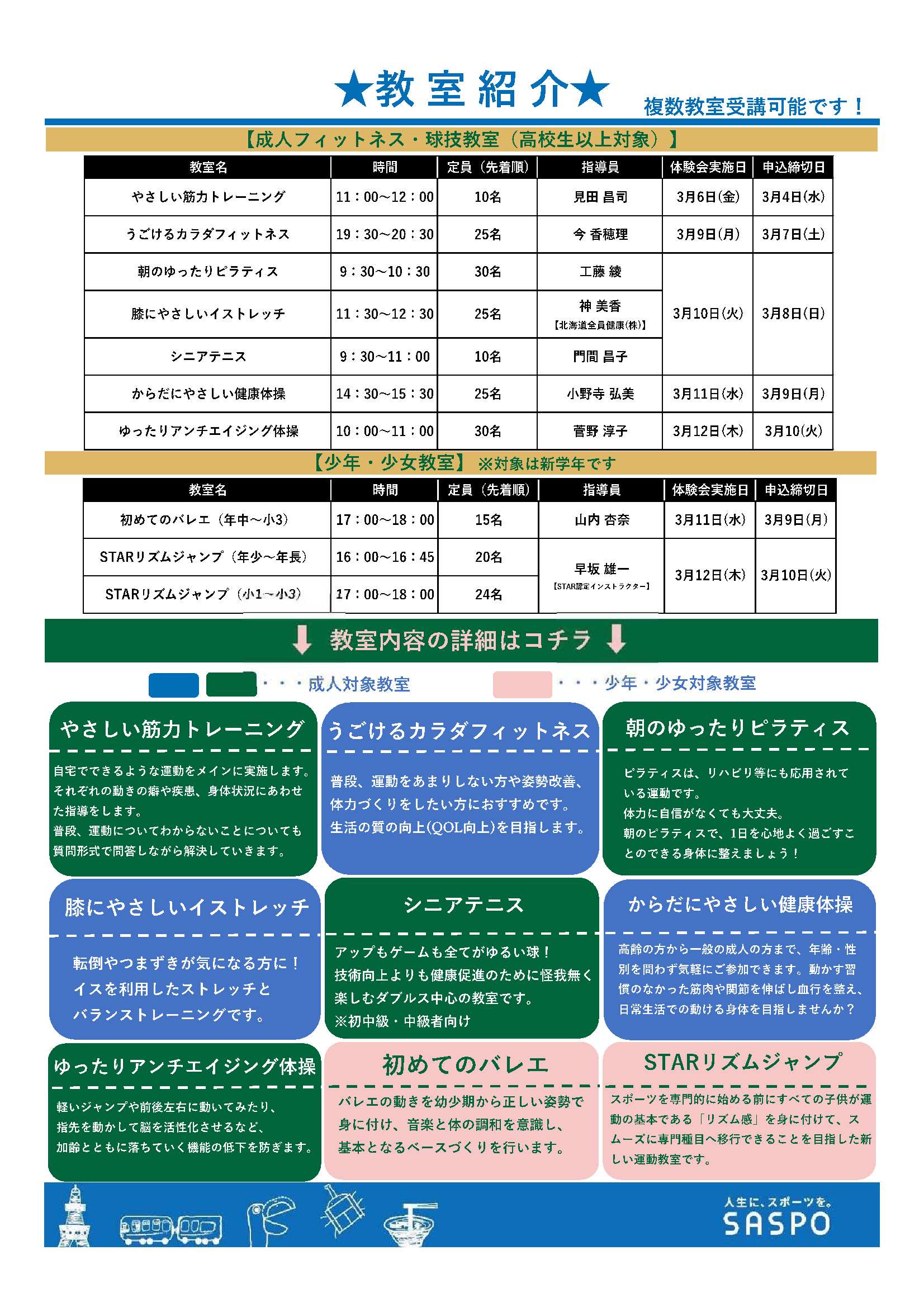 各教室の詳細については、下記体験会チラシ(PDF)をご覧ください。