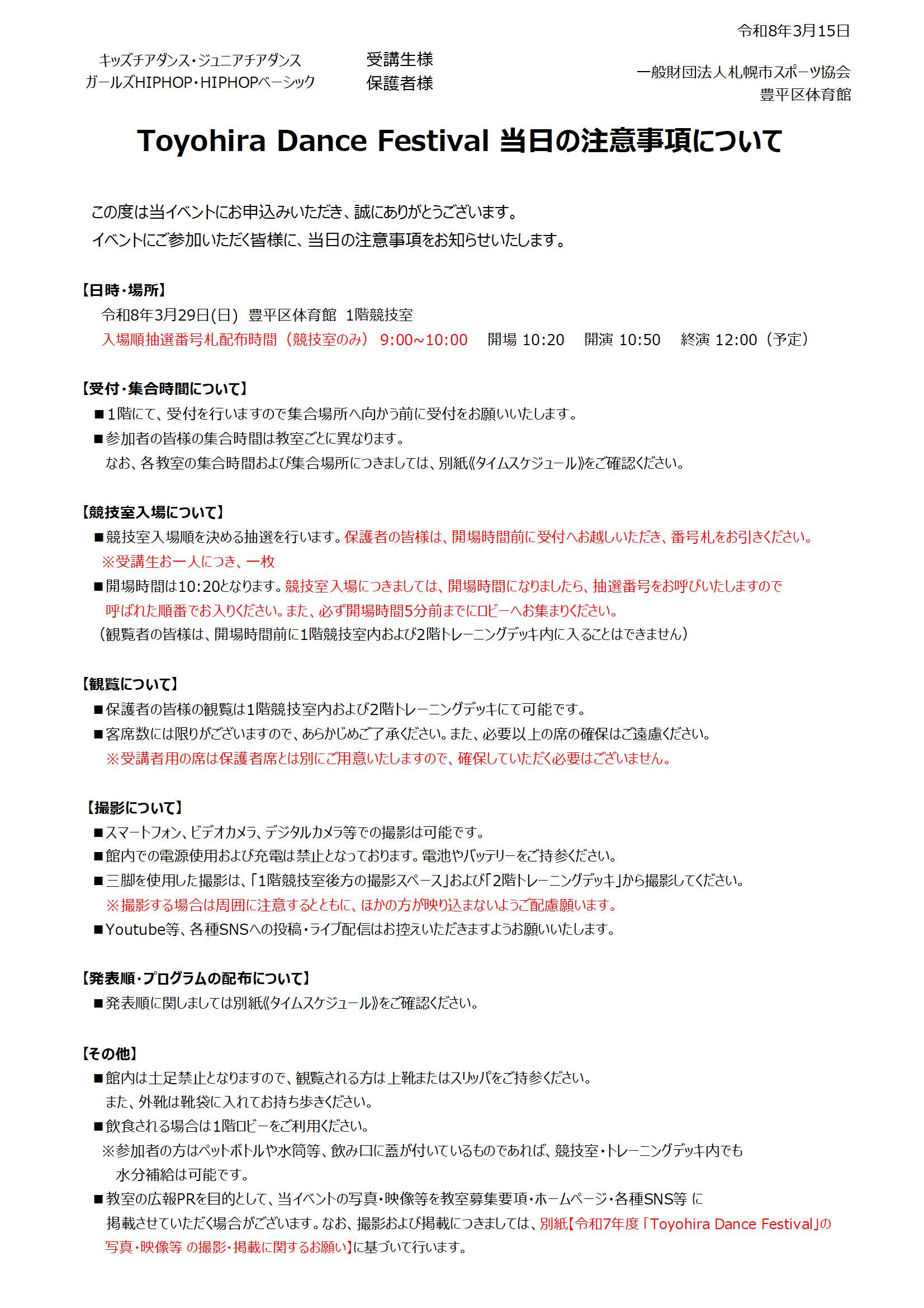 Toyohira Dance Festival 当日スケジュールのお知らせ