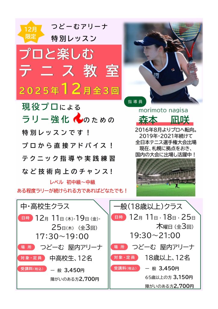 🎾12月限定 特別レッスン「プロと楽しむテニス教室」🎾